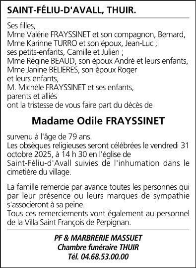 Décédée à Perpignan (66000, France) le mercredi 29 octobre 2025 à l'âge de 79 ans