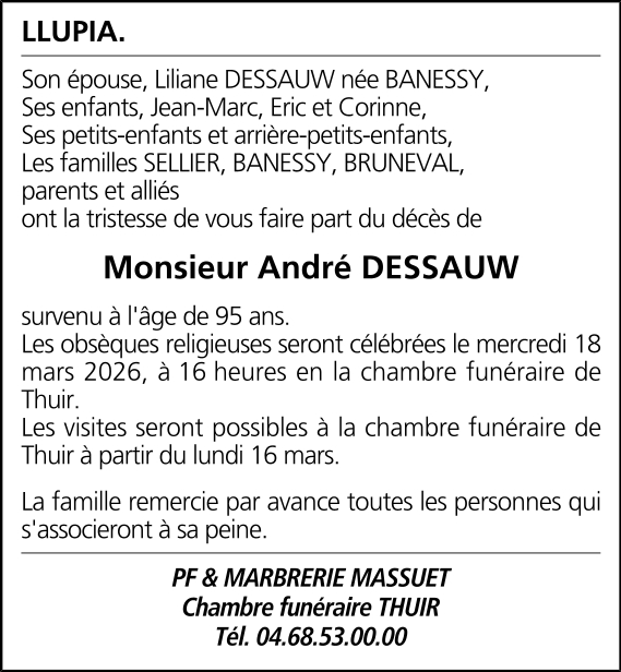 Décédé à Perpignan (66000, France) le jeudi 12 mars 2026 à l'âge de 95 ans