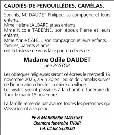 Décédée à Saint-Estève (66240, France) le mercredi 12 novembre 2025 à l'âge de 84 ans