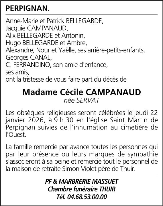 Veuve de Monsieur Jean CAMPANAUD