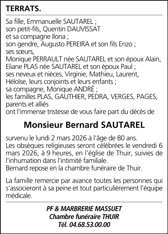 Décédé à Le Boulou (66160, France) le lundi 2 mars 2026 à l'âge de 80 ans