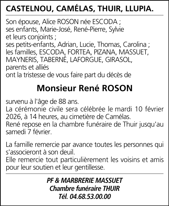 Décédé à Perpignan (66000, France) le jeudi 5 février 2026 à l'âge de 88 ans