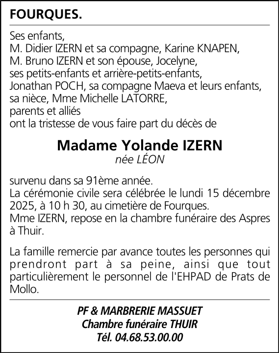 Veuve de Monsieur René IZERN