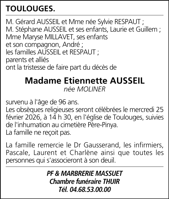 Madame Etiennette AUSSEIL née MOLINER