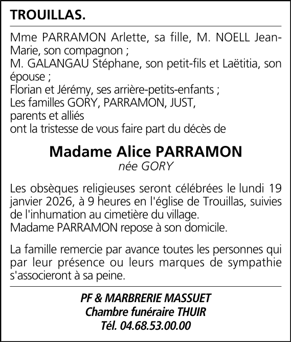 Veuve de Monsieur Louis PARRAMON